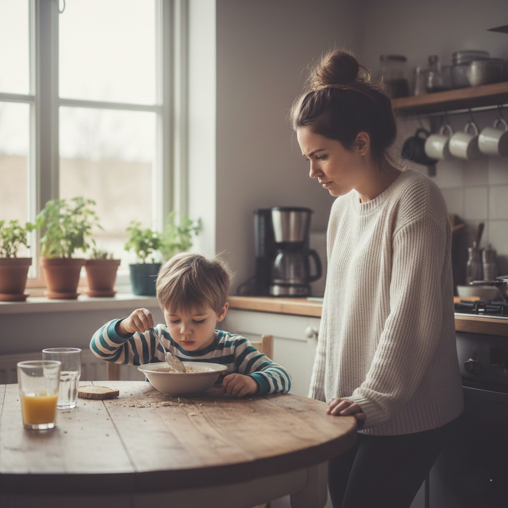 Melissa noticed it while pouring cereal. Ethan was chewing on one side of his mouth, slowly, cautiously, like he was testing thin ice. He was eight, normally loud, hungry, and halfway out the door before she could remind him to grab his backpack. Today he just stared at the bowl, spoon hovering, eyes distracted.