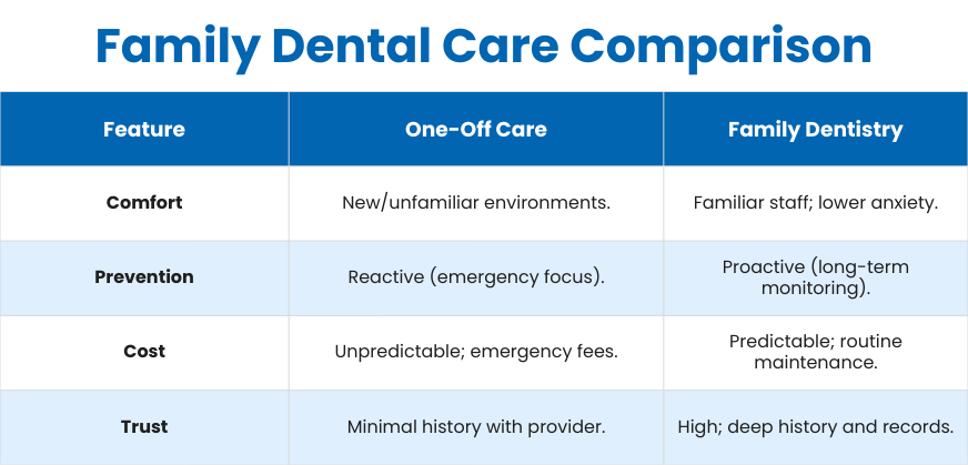 Family dentistry is proactive by design. It thrives on long-term relationships, not one-off fixes.